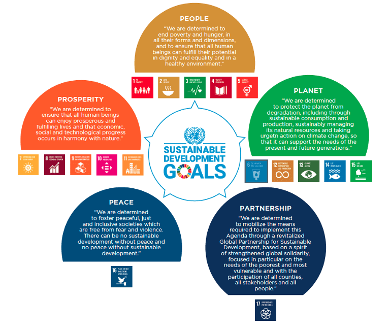 Ich arbeite an neuen Forschungs- und Lehrmöglichkeiten, um beide Clubs durch die fünf UN-SDG-Themen People, Planet, Prosperity, Peace und Partnership zu unterstützen, die hier gezeigt werden: