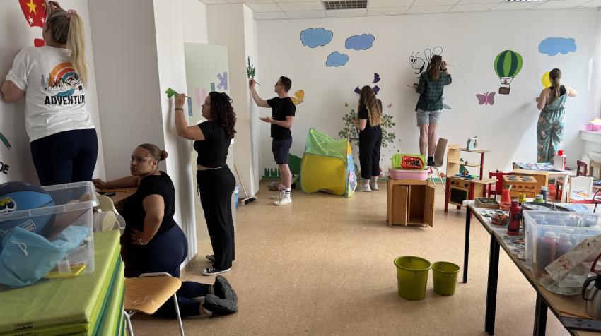 The demographics of the work have shifted with the fault lines of global conflict. Where once the majority were Syrian, the years have brought Iraqi, Afghan and, more recently, Ukrainian communities into focus. The pattern is unmistakable: our local engagements seem to map, imperfectly but persistently, the geopolitical crises elsewhere. Students embrace projects with a passion, like painting a refugee centre’s play room (see photo at the top) to helping out for refugee centre community open days (see photo above).